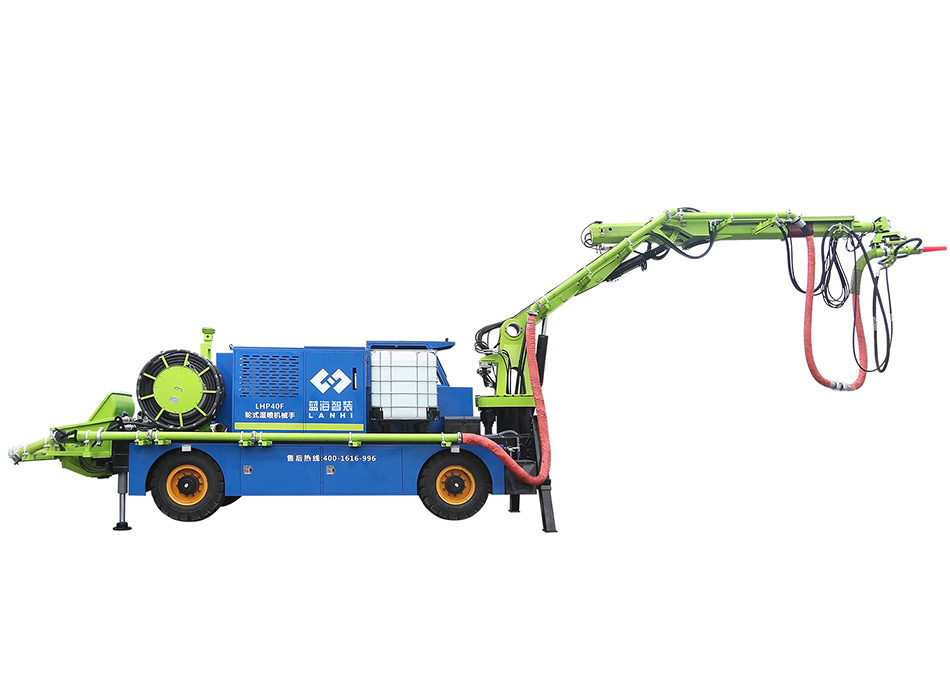 LHP40F輪式濕噴機械手是綜合國內外濕噴機技術研發的新一代輪式濕噴機械手,整機結構優化升級,故障率低,配件耗材通用性高,使用成本低。該設備具有噴射方量大、不易堵管、回彈低、性能穩定可靠等特點,提高了施工效率,減少混凝土消耗量。