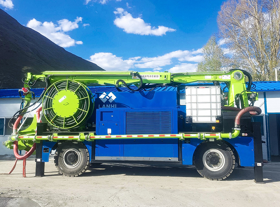 LHP40K-G輪式濕噴機(jī)械手是一款綜合國內(nèi)隧道初支混凝土噴漿工藝及高海拔施工工況研發(fā)升級的一款 專用設(shè)備,最大噴射方量達(dá)到40m3/h,廣泛應(yīng)用于隧道工程、水利工程、市政工程、道路橋梁工程等。 該設(shè)備具有噴射方量大、不易堵管、回彈低、性能穩(wěn)定可靠等特點,既適用于全斷面,也適用于半斷面 和多階梯開挖。
